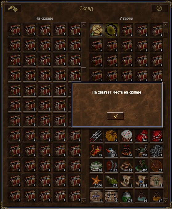 Иногда, в основном при битье бандерлогов, падает много красных сундуков, забивающих инвентарь. Приходится периодически возвращаться домой и сгружать их на склад. А так как продавать их по одному на ауке/рынке бывает лениво, они могут накапливаться.