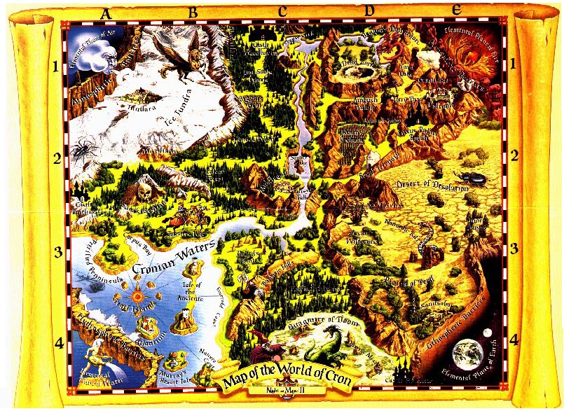 Как и на Варне, на Кроне существовало пять крупных городов - вышеупомянутый Миддлгейт, Сэндсобар, Тундара, Вулкания и островной город Атлантиум. После смерти Короля Калона контроль над миром был ослаблен и все незаконные группировки усилены. Особенно досаждали гоблины, орки и иже с ними. Официально правила Кроном дочь Калона - Королева Ламанда, но фактически большую власть имел Мандагал, в чьих руках находился почти весь преступный мир. Было и трое лордов - лорд Хоардолл (Замок Вудхэвен), лорд Слэйер (Замок Хиллстоун) и лорд Пибади (Замок Пайнхест). Последний как раз заведовал выдачей лицензий на использование машины времени. Лицензию герои получили, раздобыв для лорда Пибади заклинание "Врата Природы". Оставалось только добиться расположения Королевы Ламанды, чтобы она выбрала их в качестве команды по спасению ее отца. Для этого Королевой проводились соревнования и не стоит говорить, что герои успешно их выиграли. Но после этого Королева отослала их на Гору Дальнего Обзора. Там каждый из членов команды получил по заданию. Рыцари получили одно задание, варвары - другое, колдуны - третье и так далее. Причем они не имели права выполнять это задание при помощи других классов героев. Единственное, что разрешалось, это брать с собой взломщика. Выполнить подобные задачи было сложновато, зато именно так герои добились признания их Королевой. Они и были назначены спасательным отрядом.