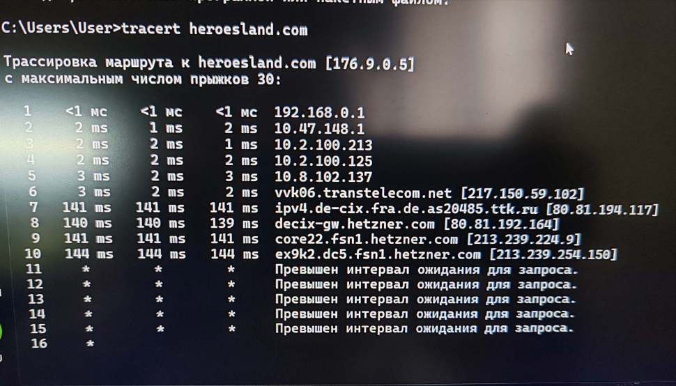 tracert heroesland.comИнструмент не самый надёжный, но хоть что-то скажет про те места, где случаются проблемы с сетью по дороге к игре.