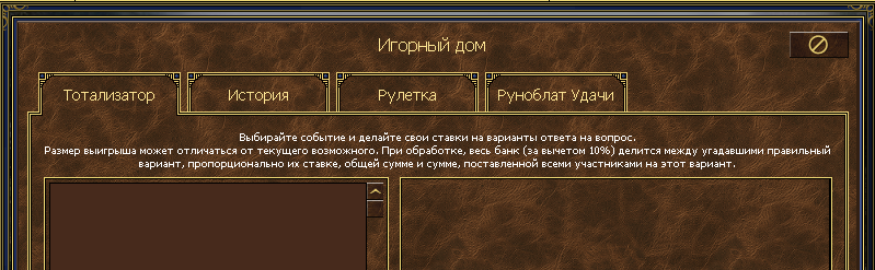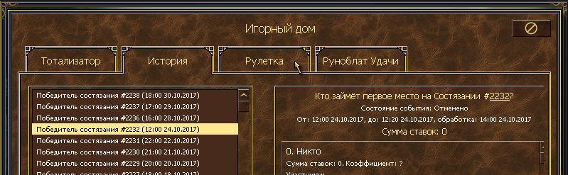 Интерфейс: Игорный дом -> История.