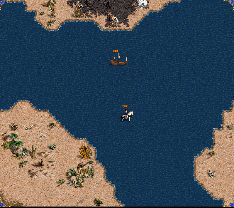 После того, как герой Amaterasu сел в лодку, на берегу осталась стоять его копия. Но самое интересное началось, когда я попробовал уплыть. Копия преследовала меня всю дорогу, пока я не решил перезагрузить клиент :)