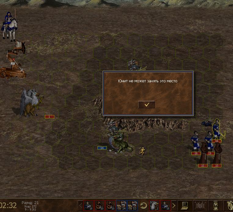 в моём случае это произошло с кентавром, привожу два скрин: http://hdd.tomsk.ru/gallery/yaarfngn#abkysvzg пытаясь тыкнуть на клетку за драконом выскакивала такая табличка -> http://hdd.tomsk.ru/gallery/yaarfngn#pxgzsgcq, но самое что интересное пегас смог туда улететь спокойно
